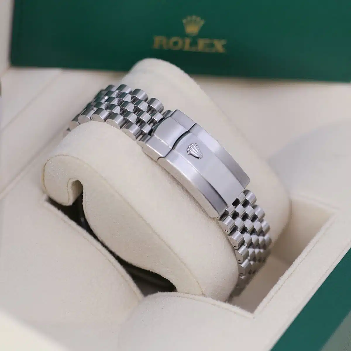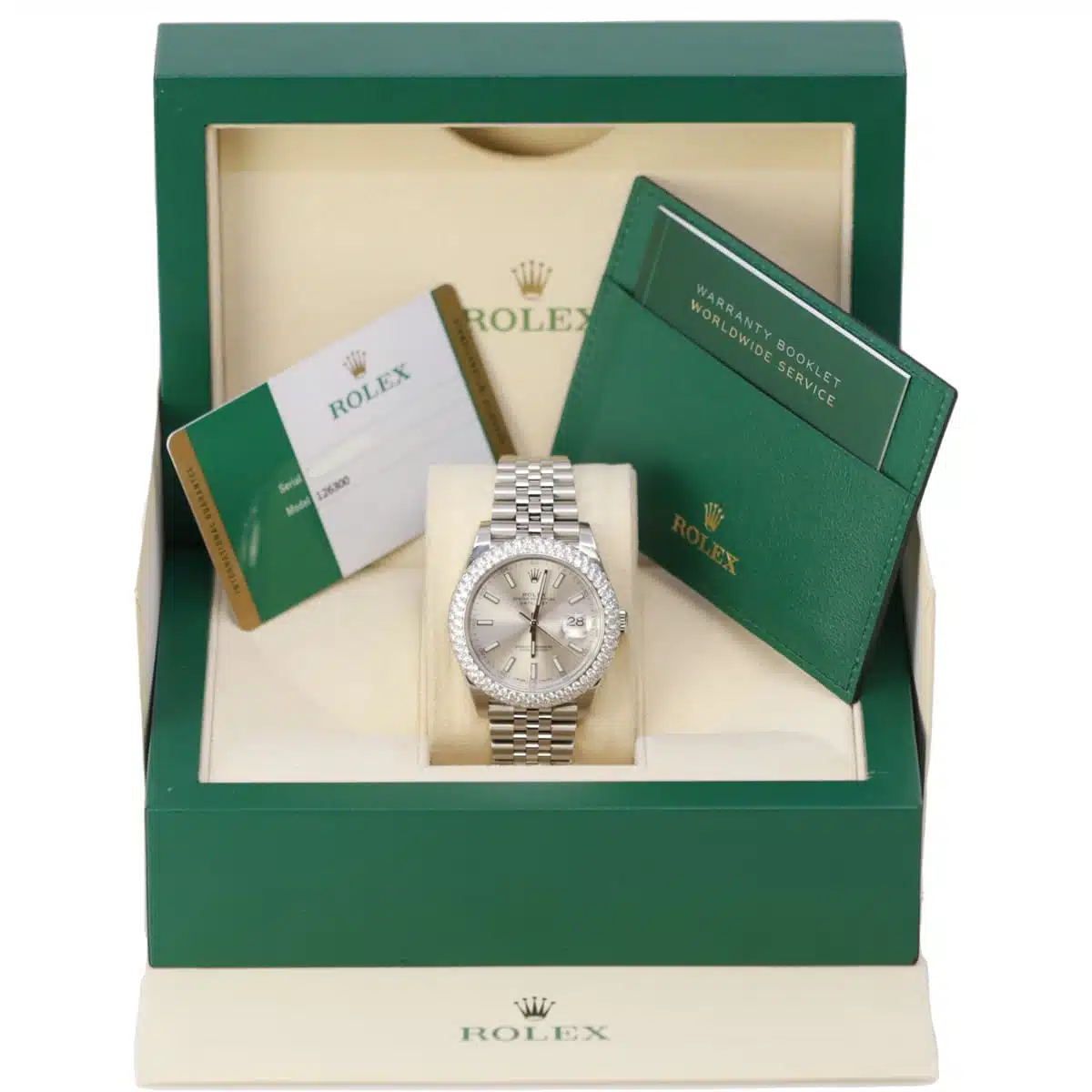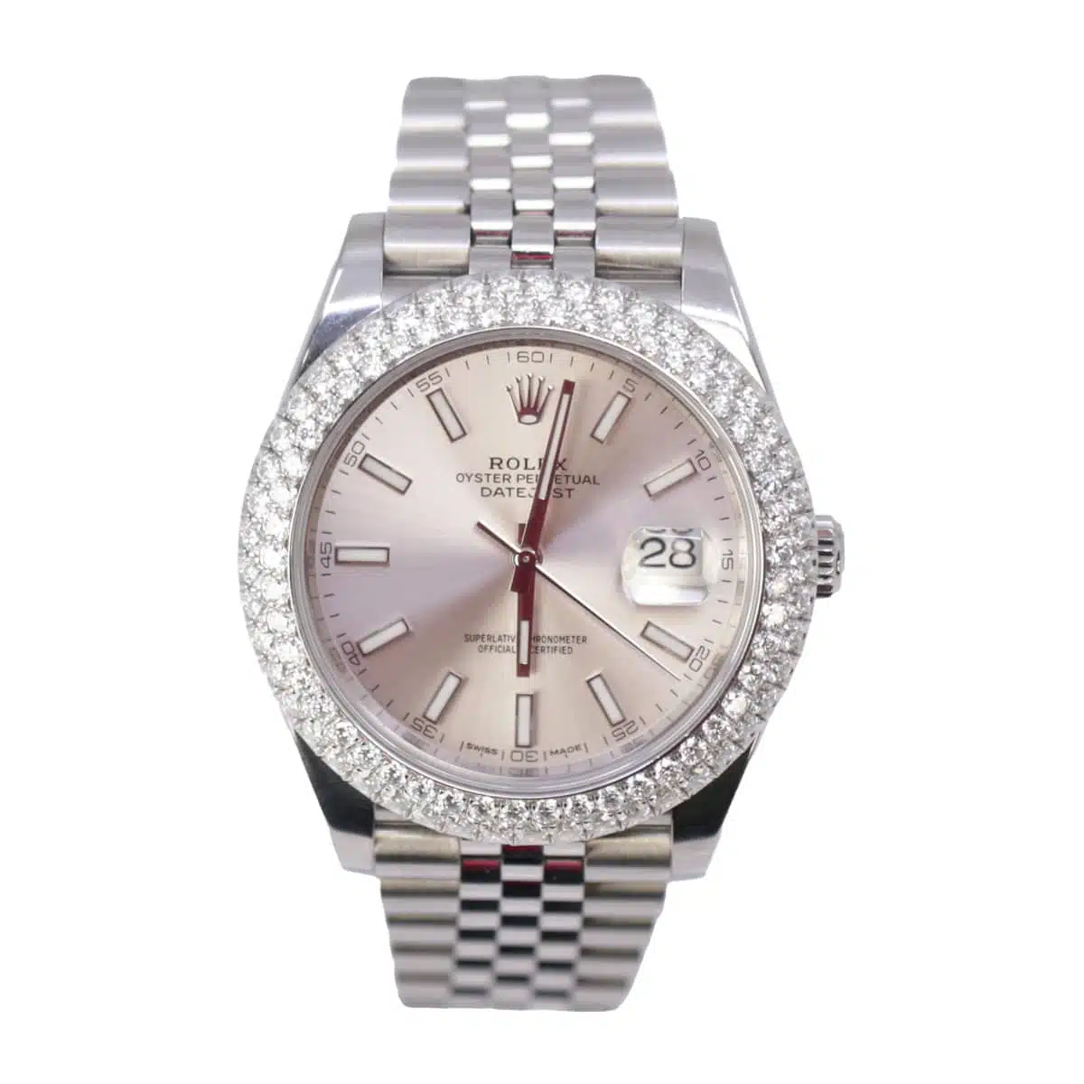 Rolex 126300 Silver Stick 41mm Dial Aftermarket Diamond Bezel