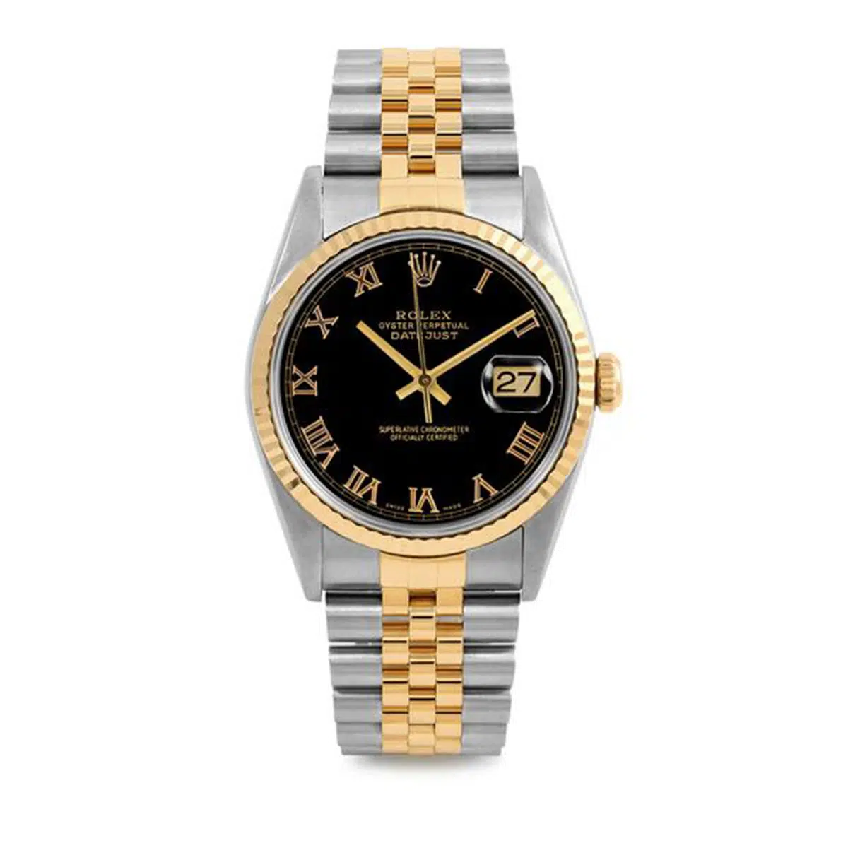 Rolex 16233 Datejust Black Roman Dial Jubilee Bracelet 36mm Watch