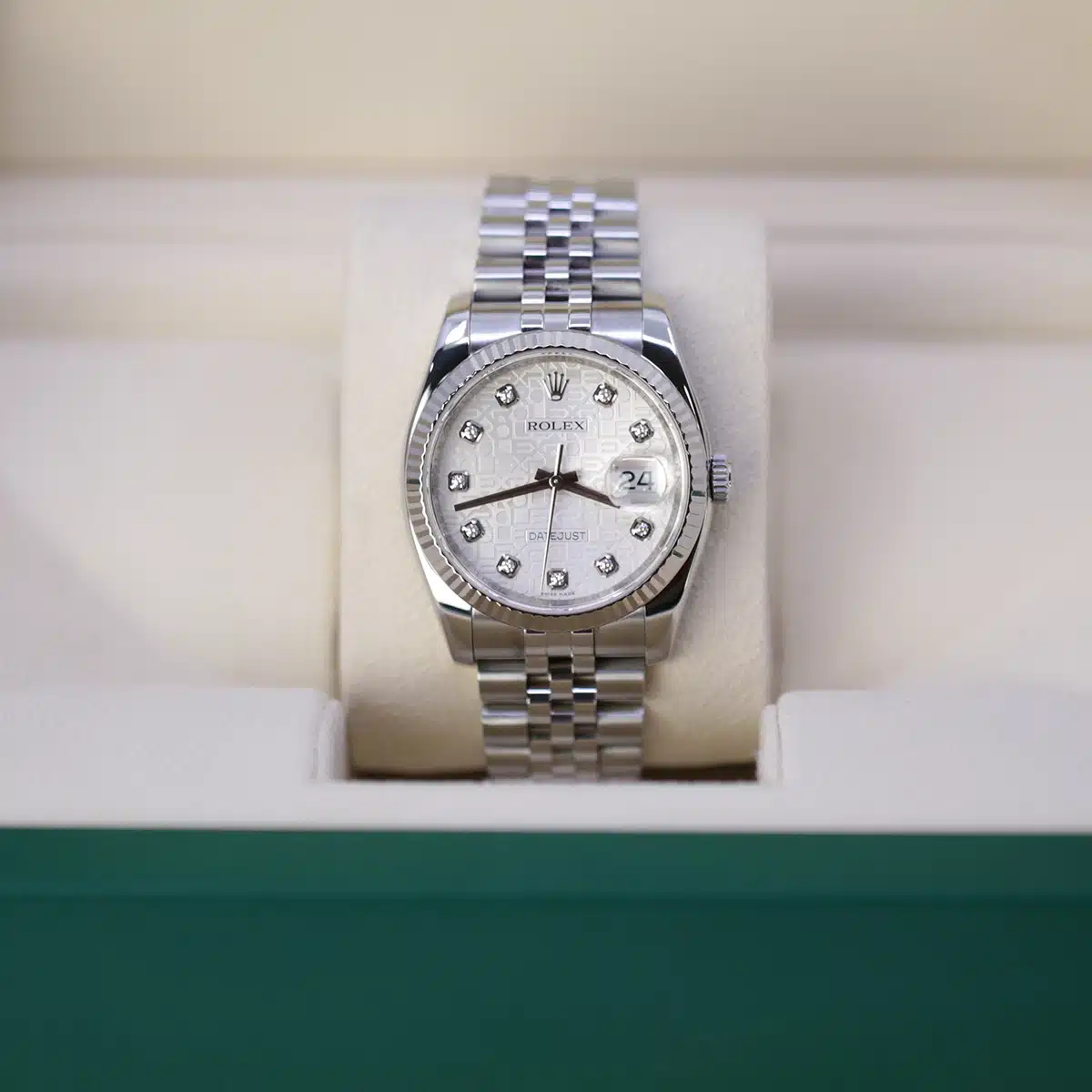 Rolex Datejust 116234 Steel & White Gold Jubilee 36mm Rolex Silver Diamond Dial