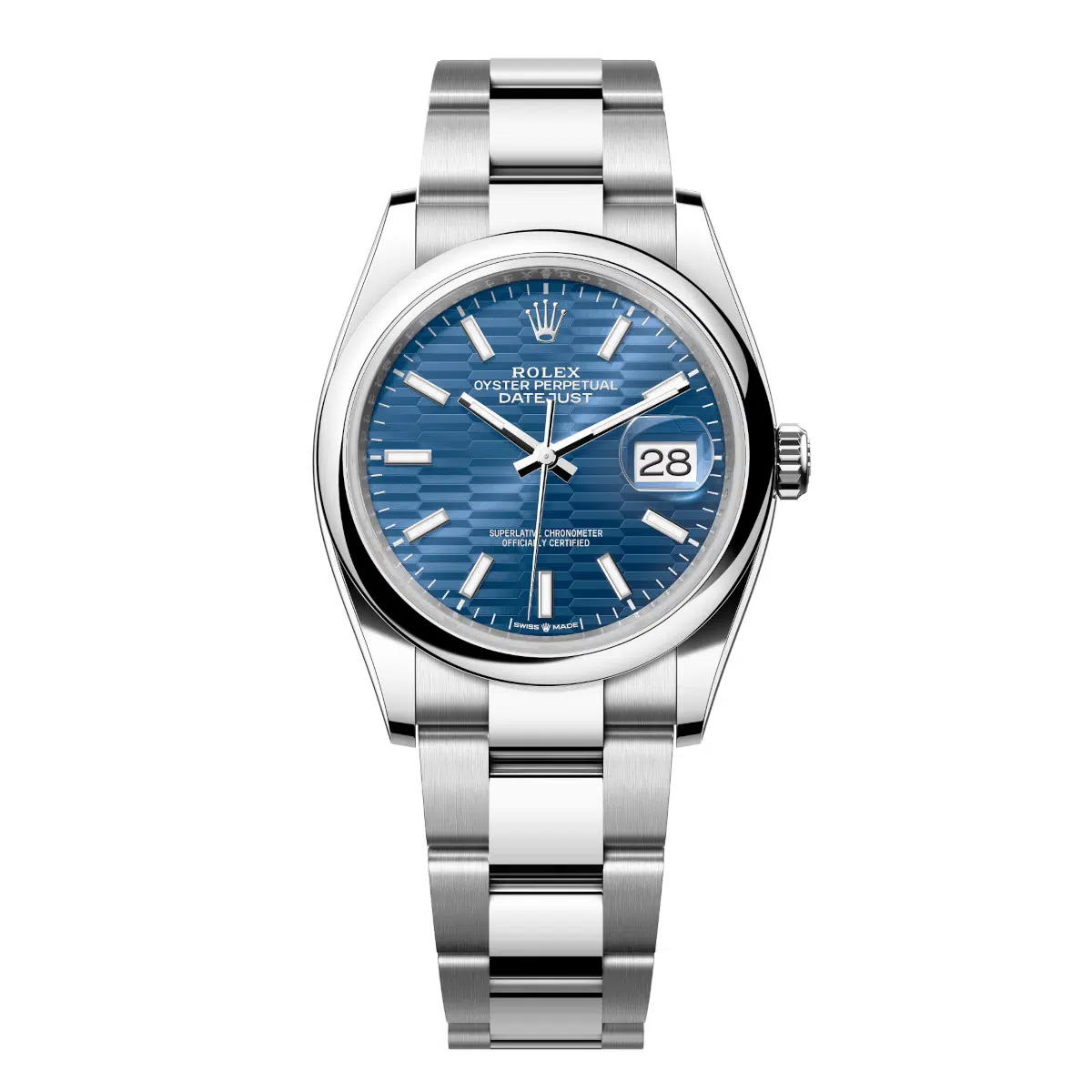 Rolex Datejust 126200-0022 Bright Blue Fluted Motif 36mm Dial Domed Bezel Oyster Bracelet Stainless Steel Watch
