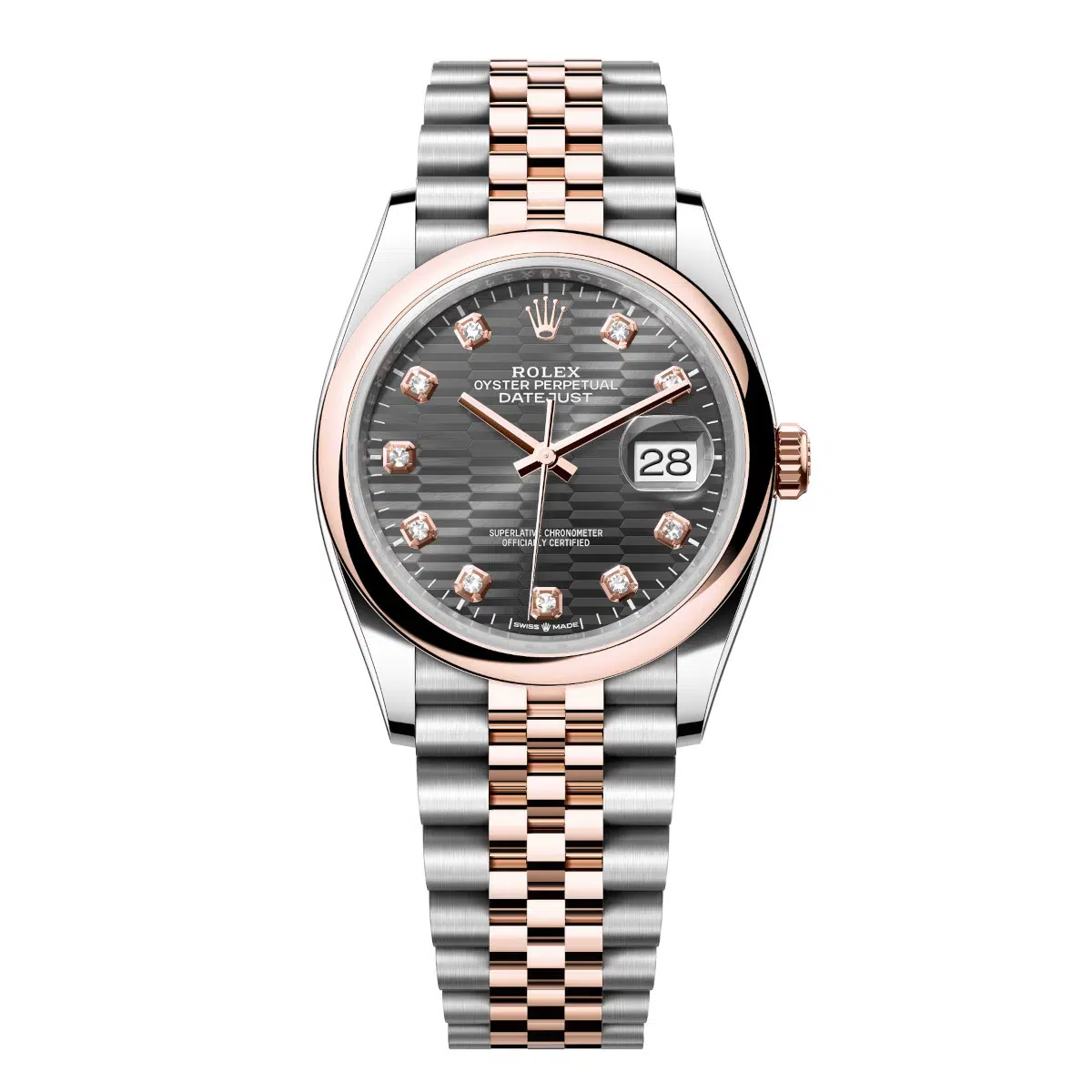 Rolex Datejust 126201-0041 Slate Fluted Motif 36mm Dial Domed Bezel Jubilee Bracelet Everose Gold and Oystersteel Watch