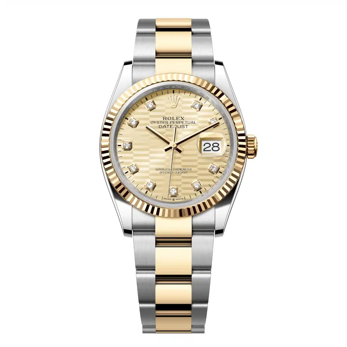 Rolex Datejust 126233-0046 Golden Fluted Motif Set with Diamonds 36mm Dial Fluted Bezel Oyster Bracelet Yellow Rolesor Watch