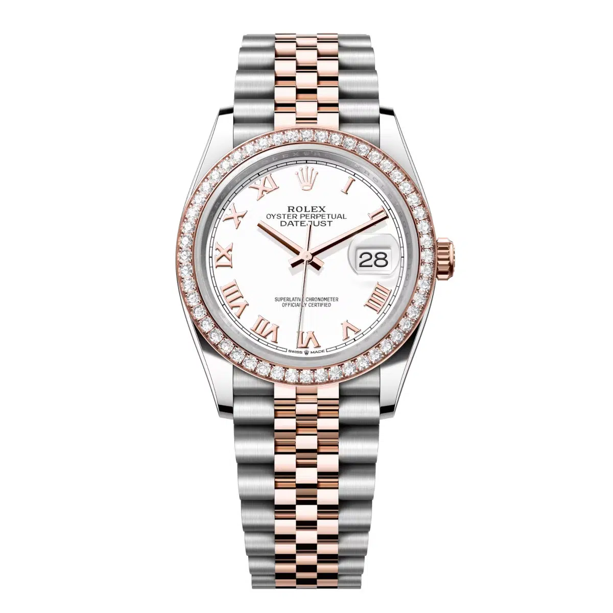 Rolex Datejust 126281RBR-0003 White Roman Numeral 36mm Dial Diamond Set Bezel Jubilee Bracelet Watch