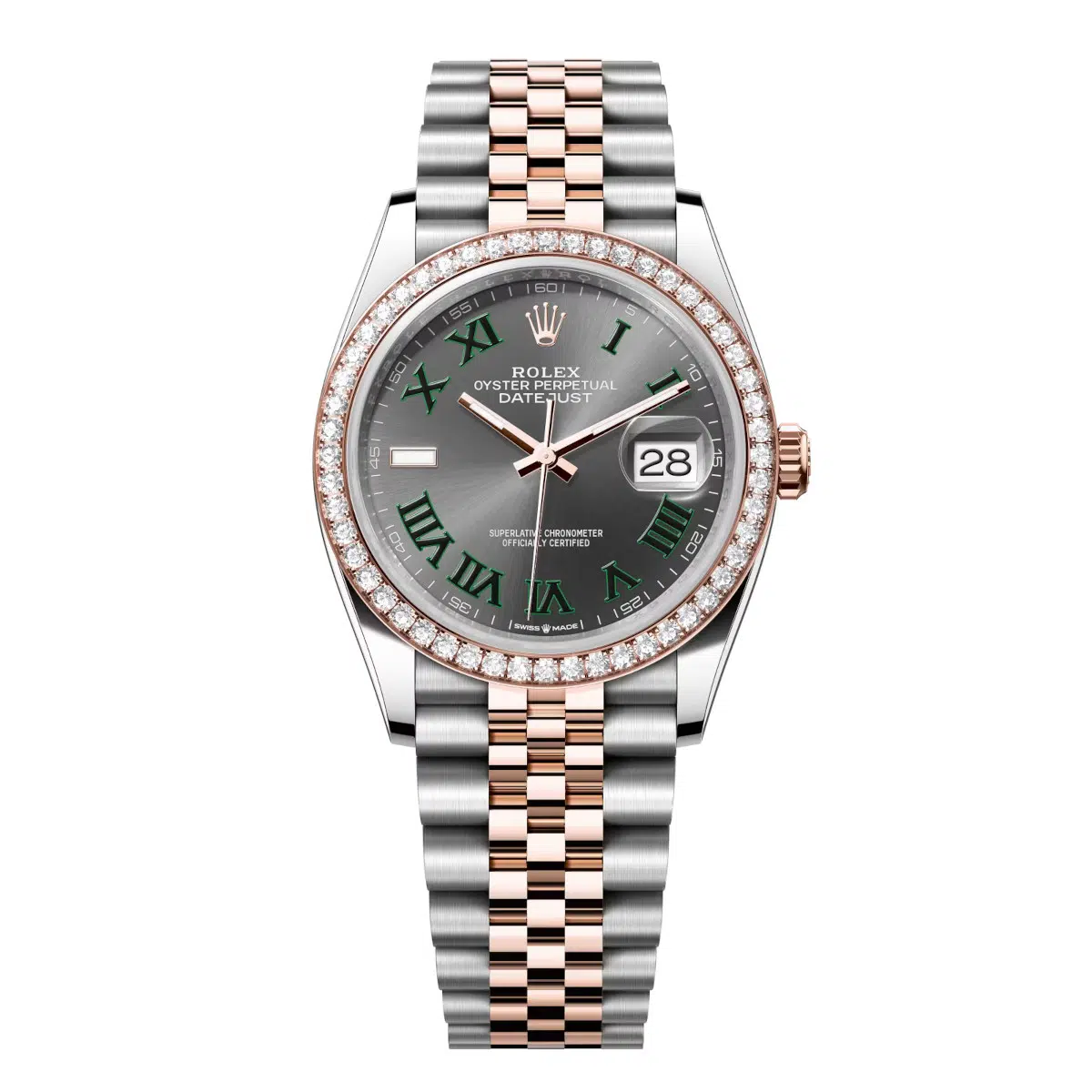Rolex Datejust 126281RBR-0017 Slate Roman Numeral 36mm Dial Diamond Set Bezel Jubilee Bracelet Watch
