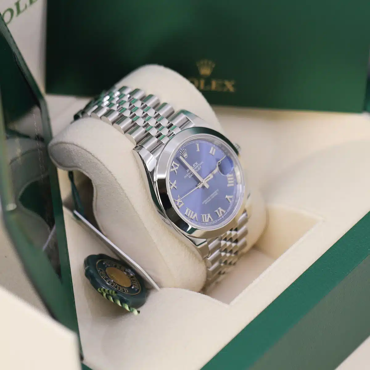 Unworn Rolex Datejust 126300-0018 Blue Roman Jubilee 41mm Stainless Steel Mens Watch
