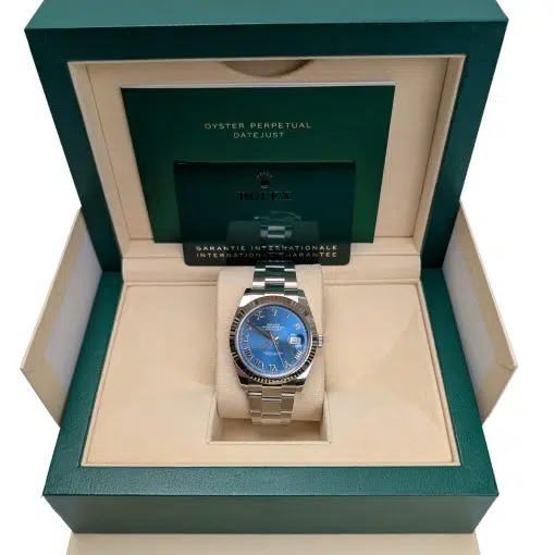 Rolex Datejust 126334-0025 Blue Roman Oyster 41mm Stainless Steel Men’s Watch, Complete Set (Rolex Box, Rolex Card 2021)