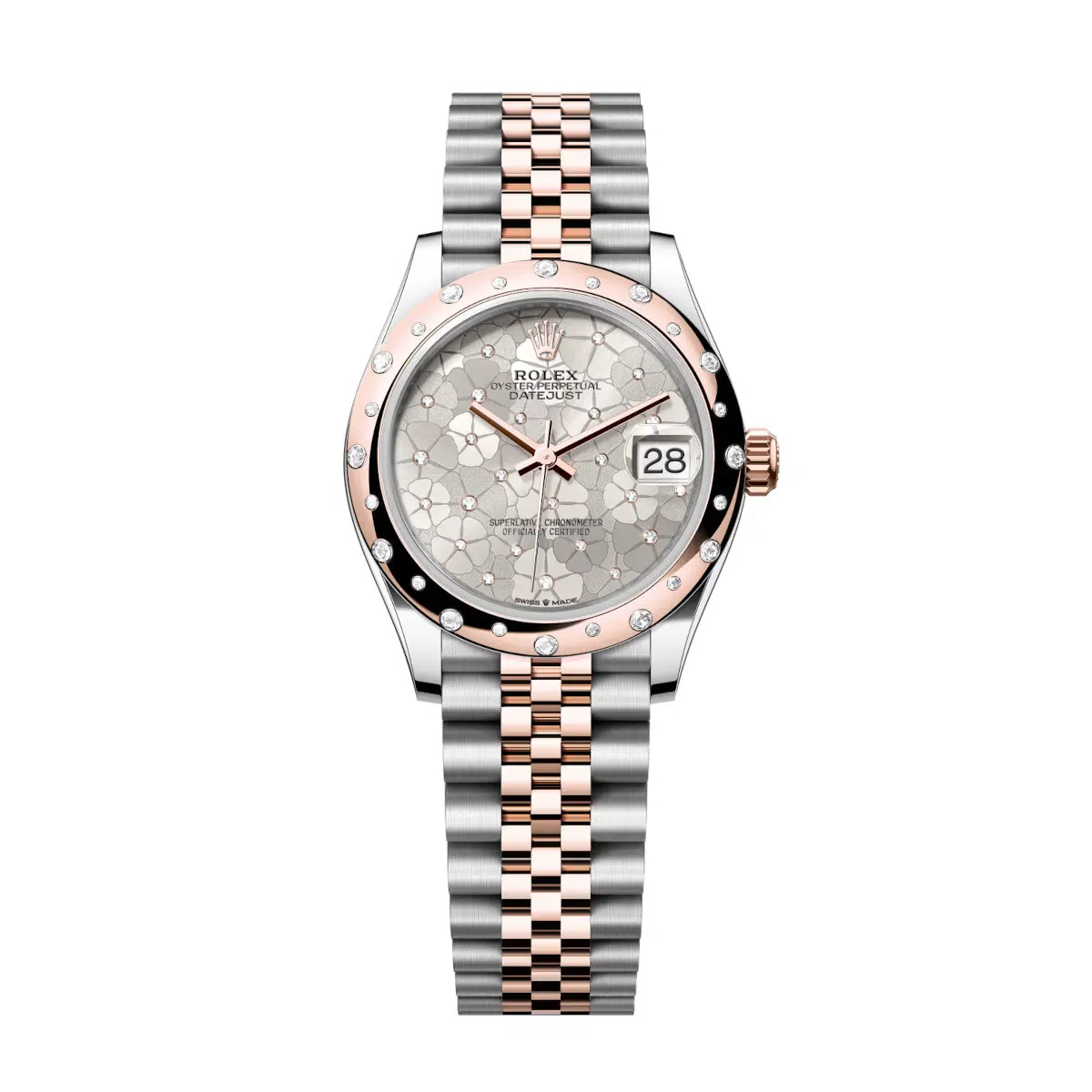 Rolex Datejust 278341RBR-0032 Silver Floral Motif Set with Diamonds 31mm Dial Domed Diamond-Set Bezel Jubilee Bracelet 18k Everose Gold and Stainless Steel Watch