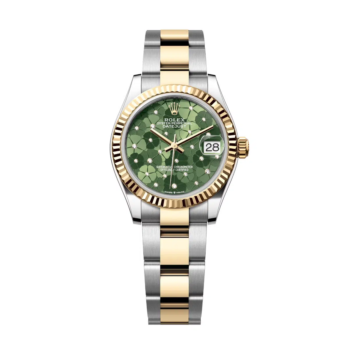 Rolex Datejust 31mm 278273-0031 Olive Green Floral Motif Set with Diamonds Dial Stainless Steel and Yellow Gold Oyster Bracelet Watch