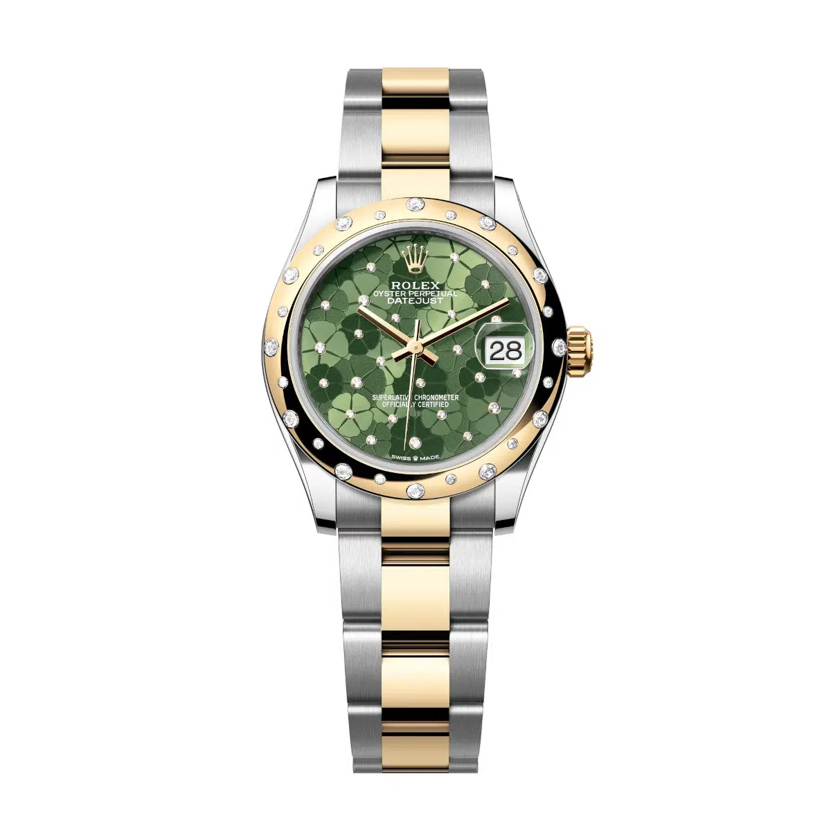 Rolex Datejust 278343RBR-0031 Olive Green Floral Motif Set with Diamonds 31mm Dial Stainless Steel and Yellow Gold Oyster Bracelet Watch