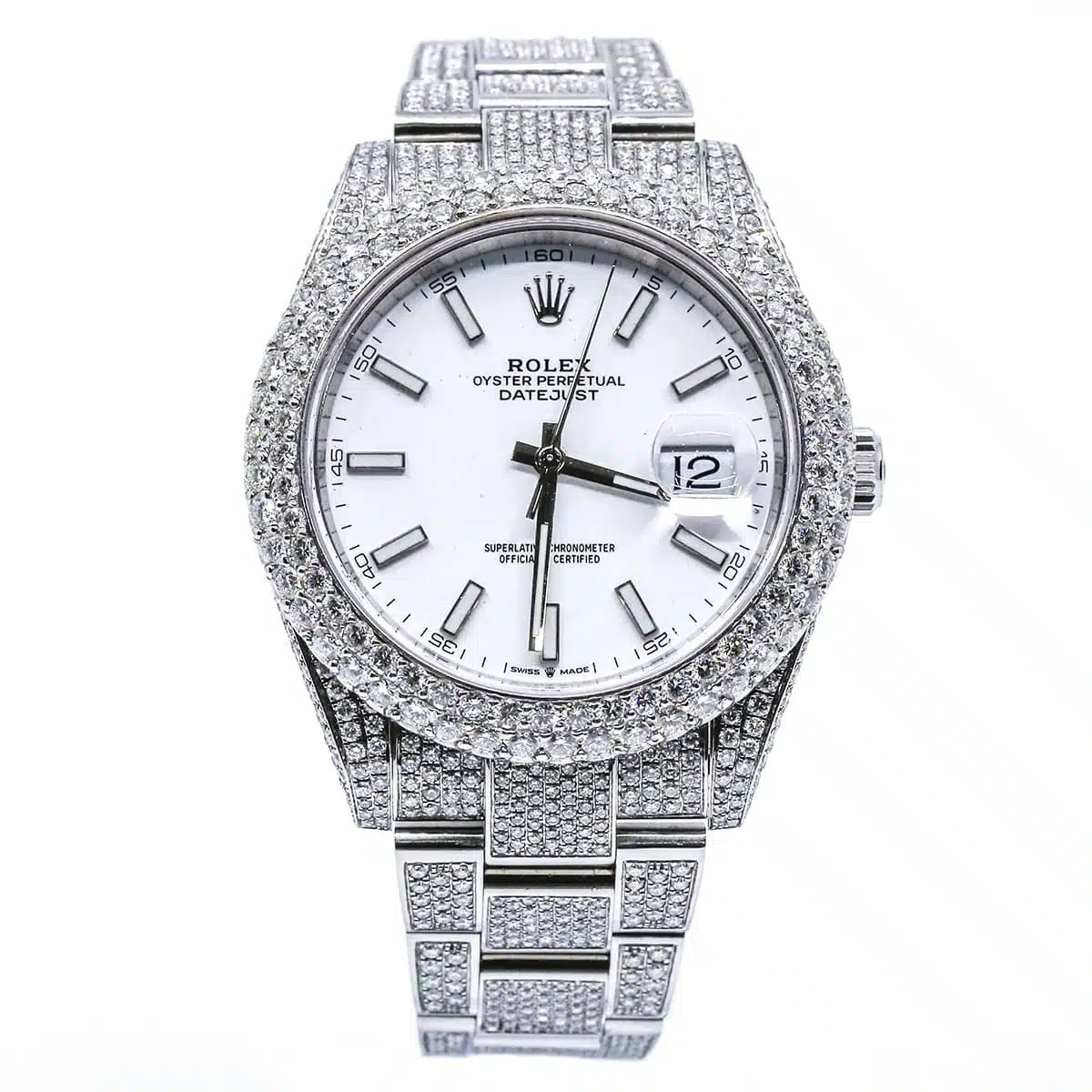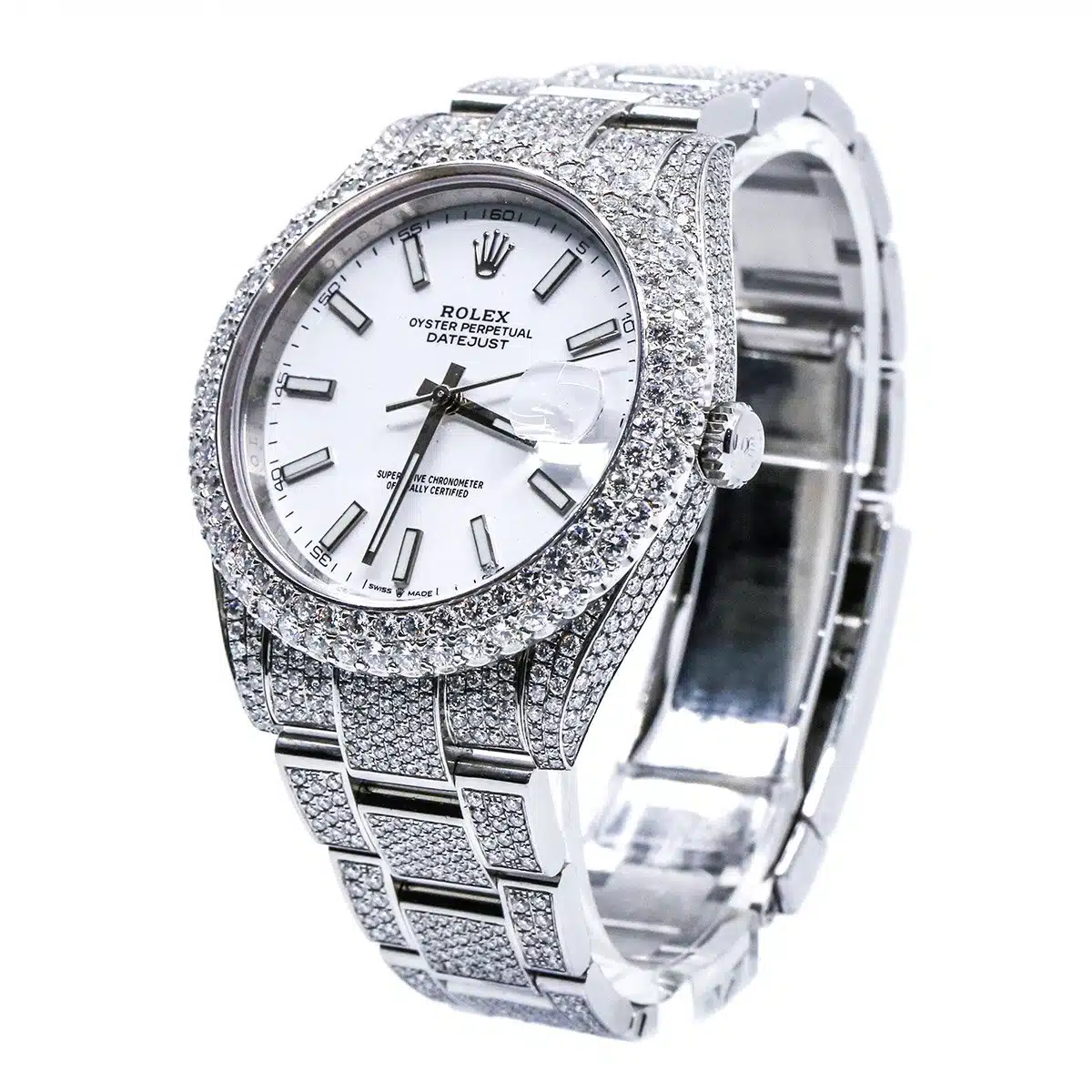 Rolex Datejust 41mm 126300 Iced Out White Stick Dial Oyster Bracelet Mens Watch