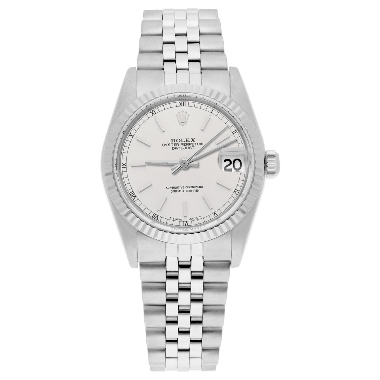 Experience timeless elegance with this 1984 Rolex Datejust reference 68274, featuring a classic 31mm stainless steel case with white gold fluted bezel. The silver dial showcases refined index hour markers and silver-toned hands, powered by an automatic movement with quick-set date function. Protected by a scratch-resistant sapphire crystal and screw-down crown, this timepiece maintains excellent condition following professional servicing. Complete with original box and backed by our comprehensive 1-year mechanical warranty, this iconic Rolex represents enduring Swiss craftsmanship and precision timekeeping.