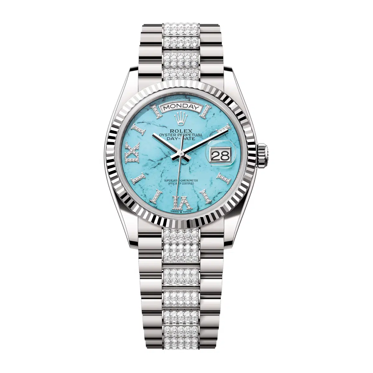 Rolex Day-Date 128239-0045 Turquoise Roman Dial and Diamond Bracelet