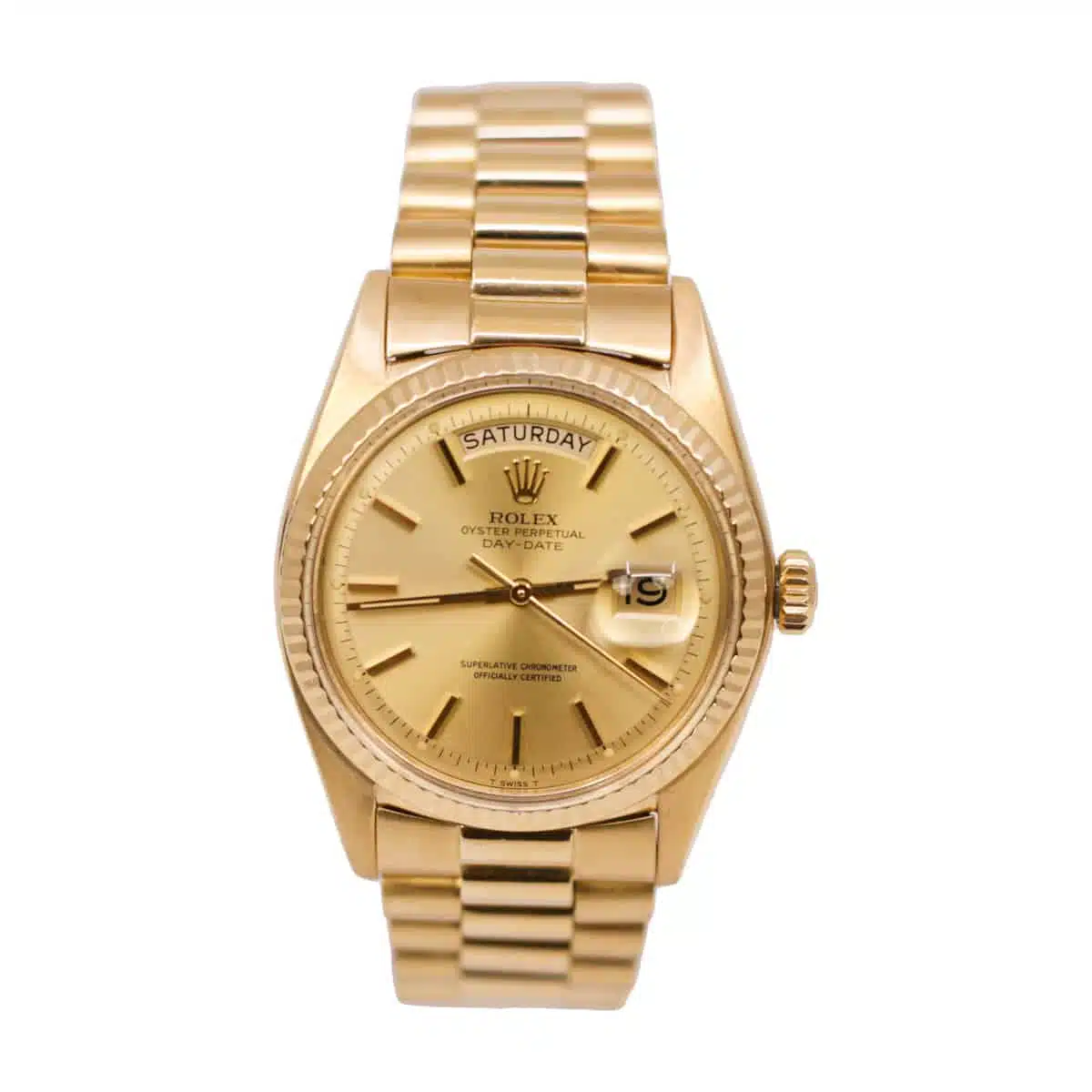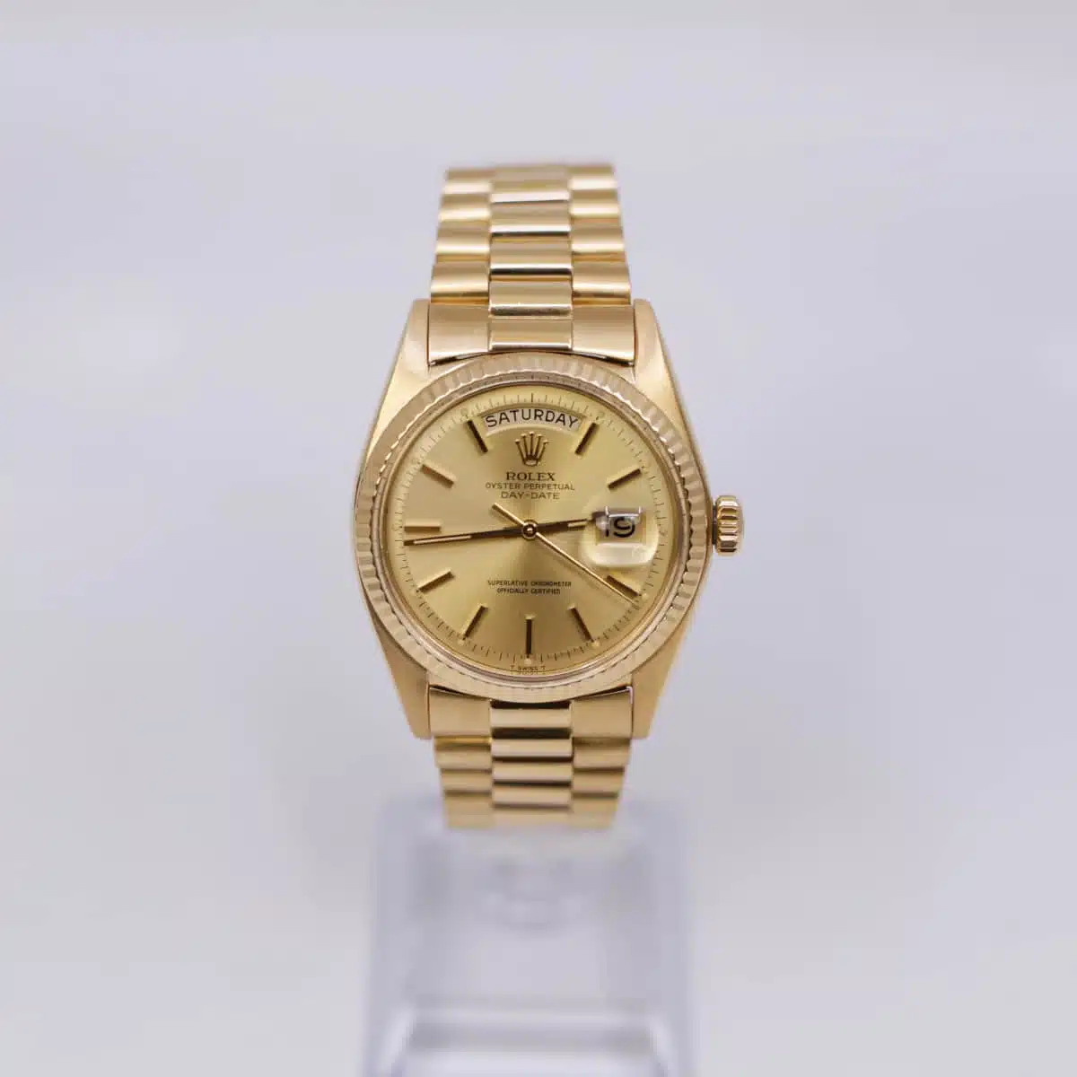 Rolex Day-Date 1802 18K Yellow Gold Champagne Stick 36mm Dial Watch with Rolex Box, 2-year warranty with Luxury Watches USA
