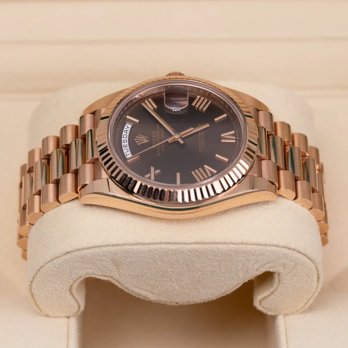 Rolex Day-Date 228235-0002 President 40mm Rose Gold Chocolate Roman Dial Watch
