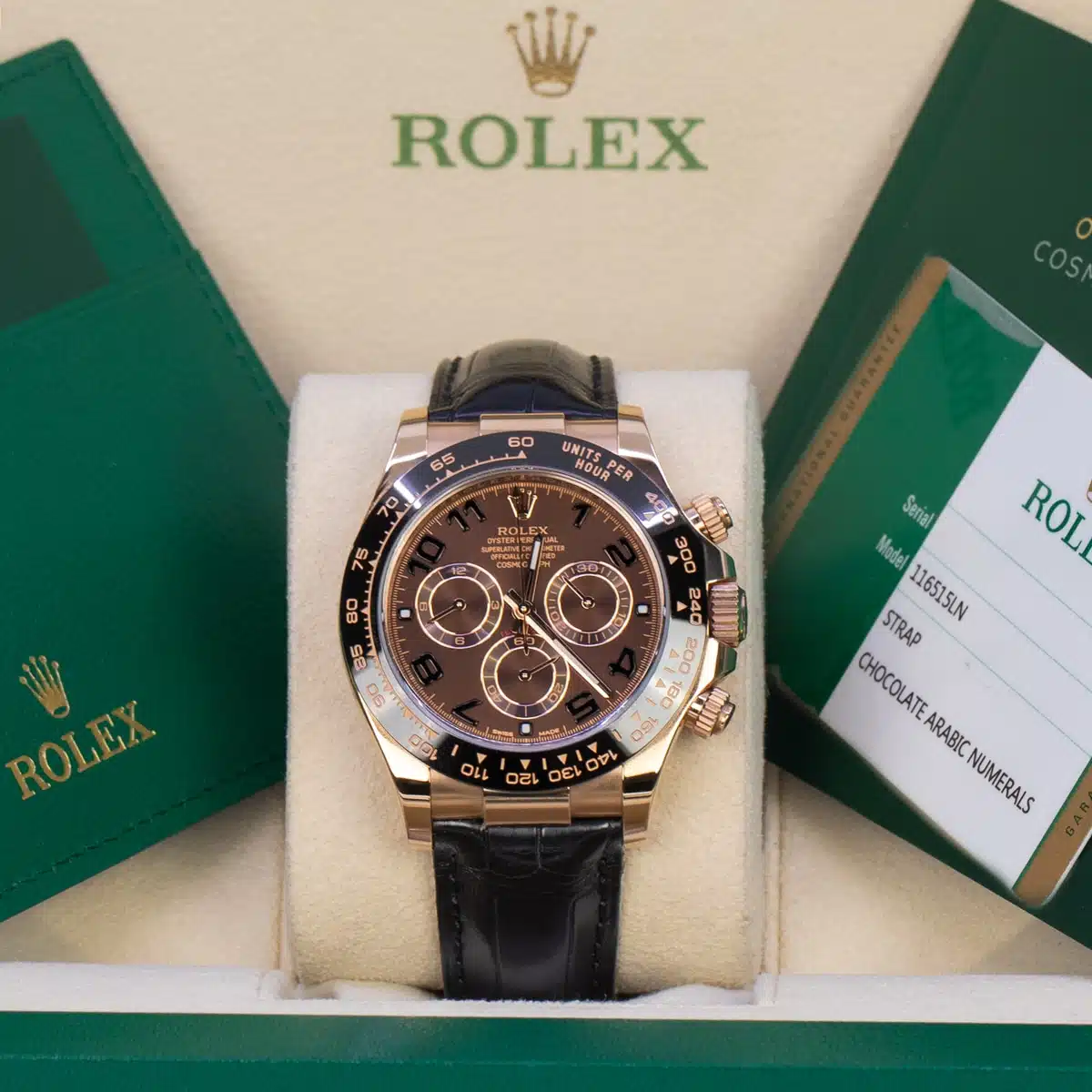 Rolex Daytona 116515LN-0004 Leather Strap Everose Gold Chocolate Dial Black Ceramic Bezel 40mm