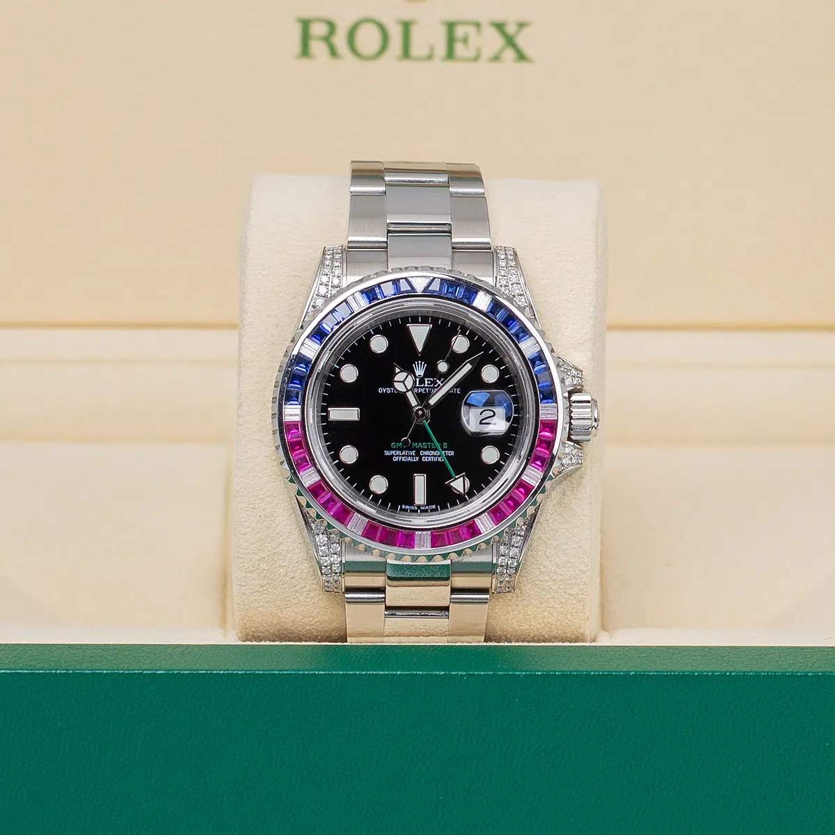Rolex GMT-Master IIÂ 116710LN 40 mm Aftermarket Sapphire Ruby Diamond Bezel and Lugs Watch