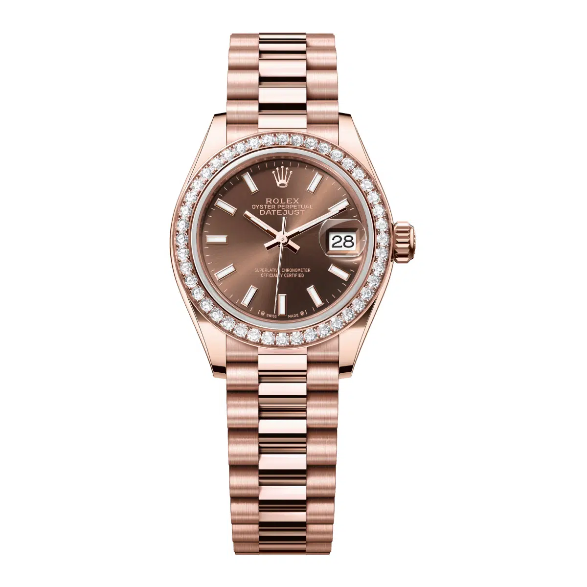 | Model case | Oyster, 28 mm, Everose gold and diamonds |