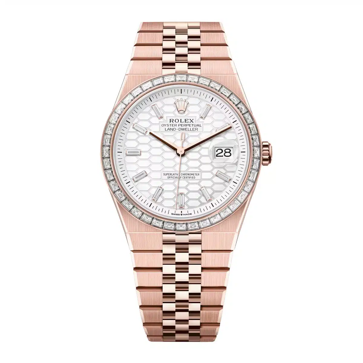 Rolex Land-Dweller 127385TBR-0003 40mm White Honeycomb Dial Diamond-Set Bezel 18kt Everose Gold Jubilee Bracelet Watch