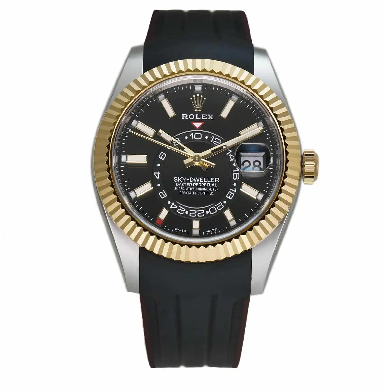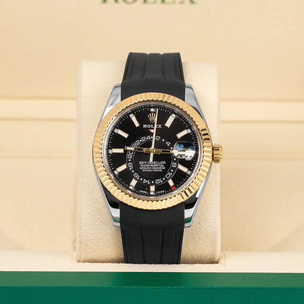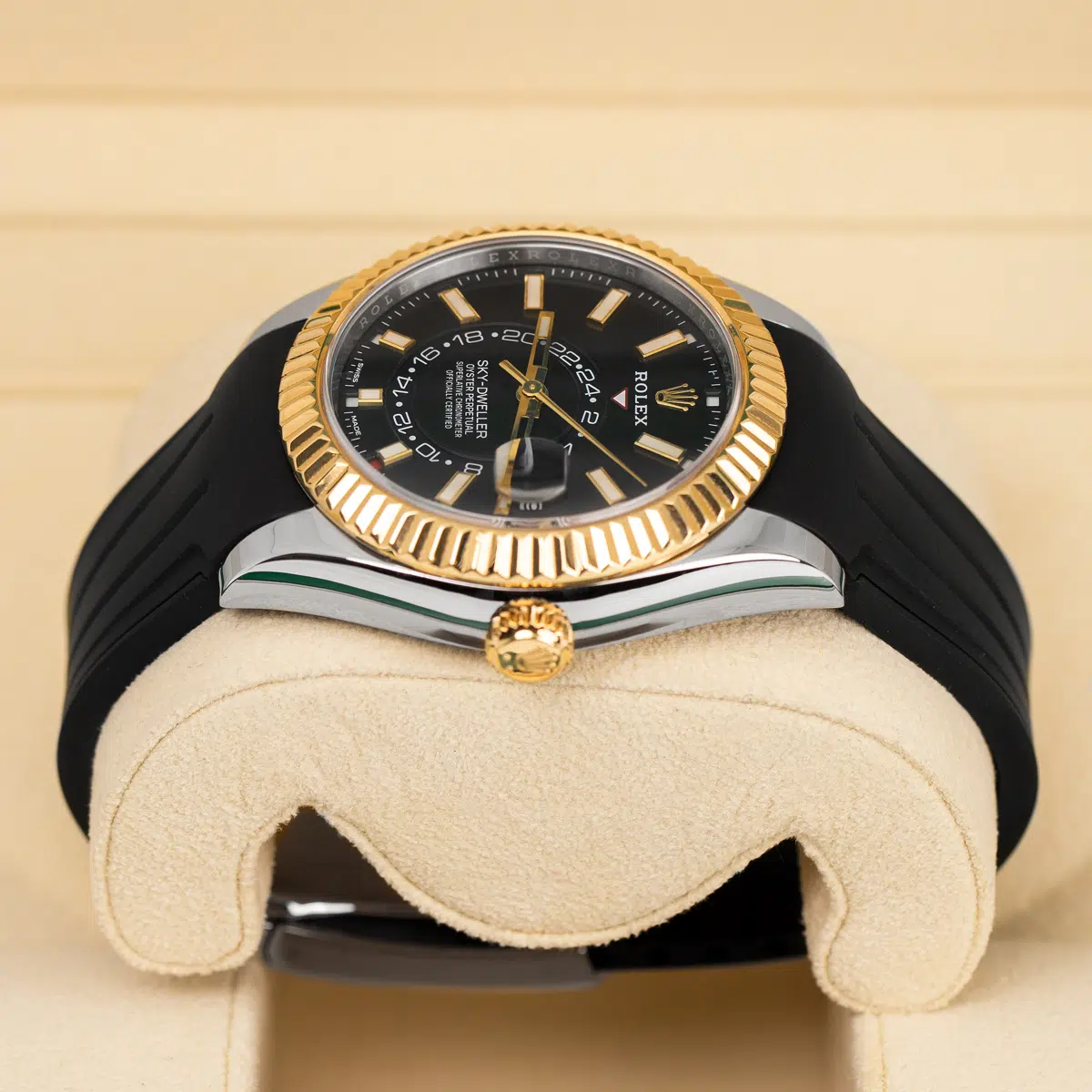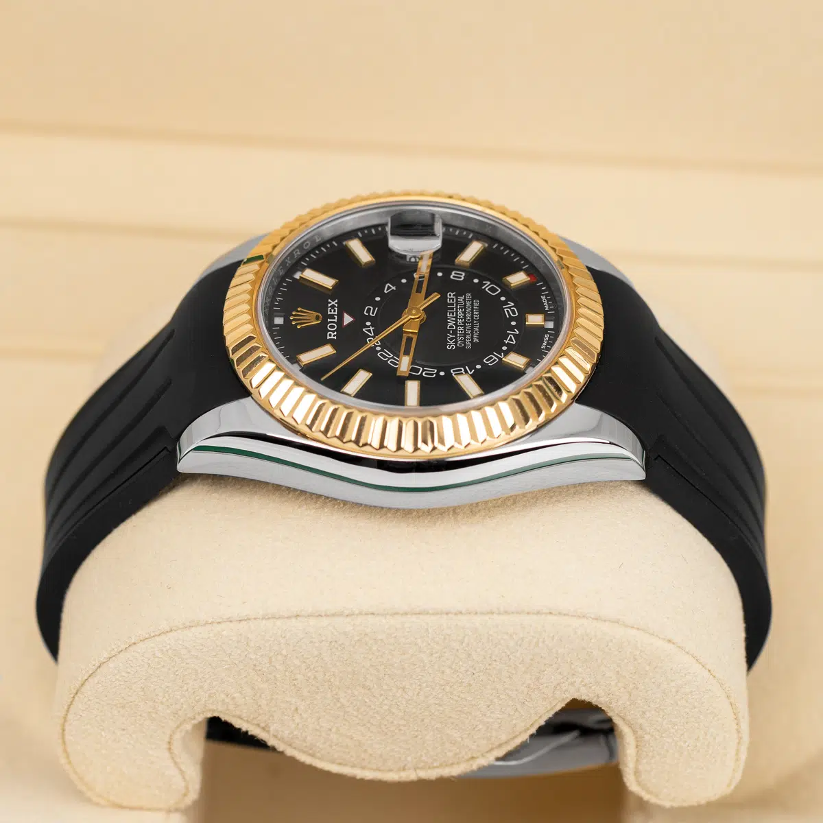 Rolex Sky-Dweller 326933 18kt Yellow Gold and Stainless Steel Black Index Dial Rubber B Band Watch