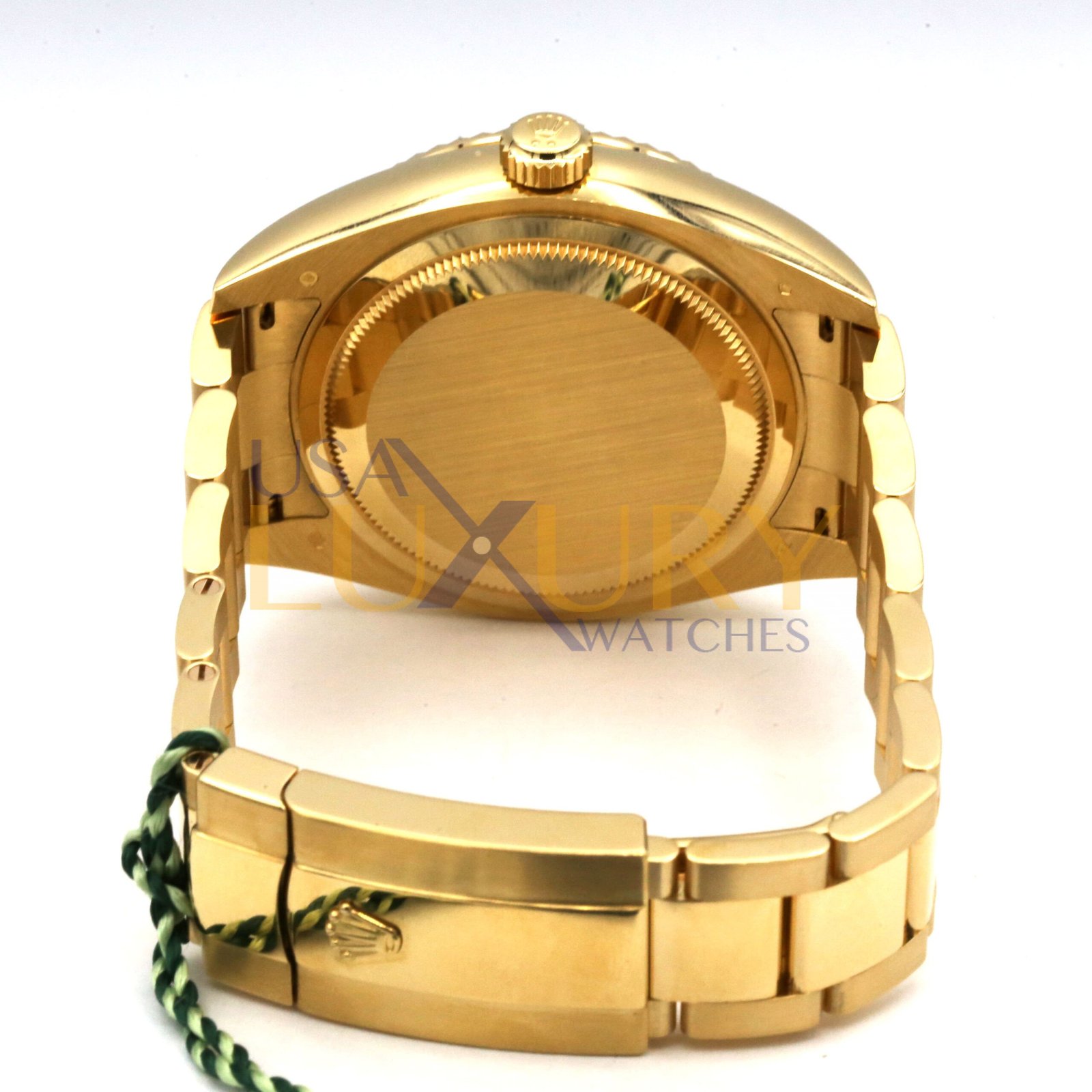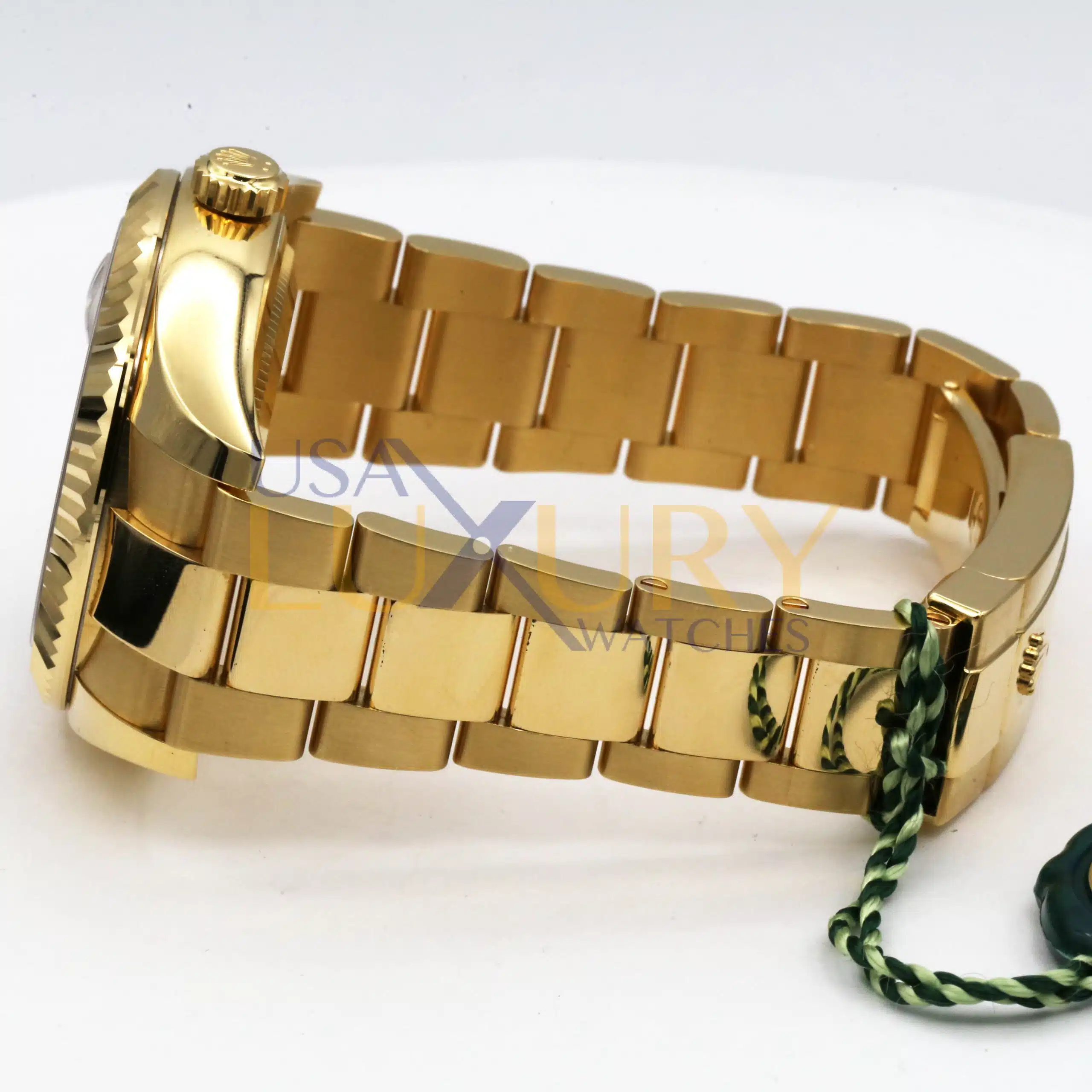 42mm 18K yellow gold case, screw-down back, screw-down crown, fluted bezel with bidirectional rotatable Rolex Ring Command, scratch-resistant sapphire crystal with cyclops lens over the date and double anti-reflective coating, white dial, index hour markers with Chromalight.