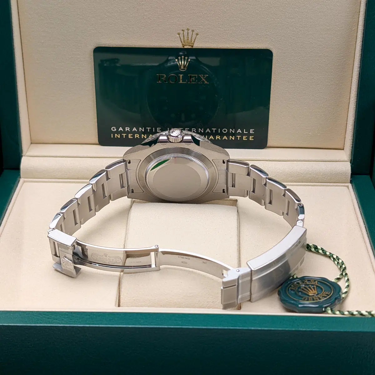 Rolex calibre 3235 automatic movement, approximately 70 hours of power reserve, Oyster bracelet with flat three-piece links, folding Oysterlock buckle with glidelock extension system. Waterproof to 300 meters.