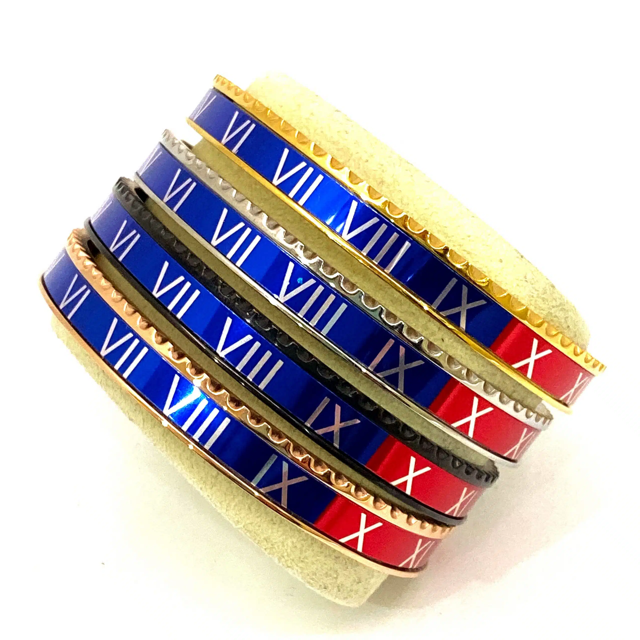 Speedometer Style Bracelet 1pcs Stainless Steel Watch Bangle, Red-Blue