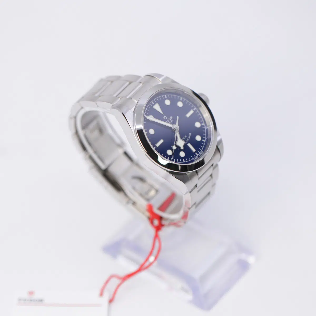 Tudor Heritage Black Bay 79500-0004 self-winding automatic watch, features a 36mm stainless steel case surrounding a blue dial on a stainless steel bracelet with folding buckle. Functions include hours, minutes and seconds.